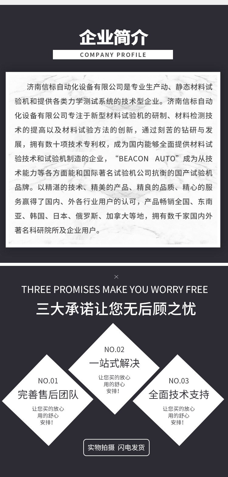 濟(jì)南信標(biāo)自動(dòng)化設(shè)備有限公司主要生產(chǎn):動(dòng)靜態(tài)萬(wàn)能疲勞試驗(yàn)機(jī),接骨板彎曲試驗(yàn)機(jī),縫合線拉伸疲勞試驗(yàn)機(jī),髖膝關(guān)節(jié)磨損試驗(yàn)機(jī),電子萬(wàn)能試驗(yàn)機(jī)、液壓萬(wàn)能試驗(yàn)機(jī)、巖石三軸、四軸,電液拉力試驗(yàn)機(jī),材料試驗(yàn)機(jī),高低溫蠕變,高低頻疲勞,拉伸、扭轉(zhuǎn)、杯突等二十多個(gè)系列兩千多個(gè)的品種。